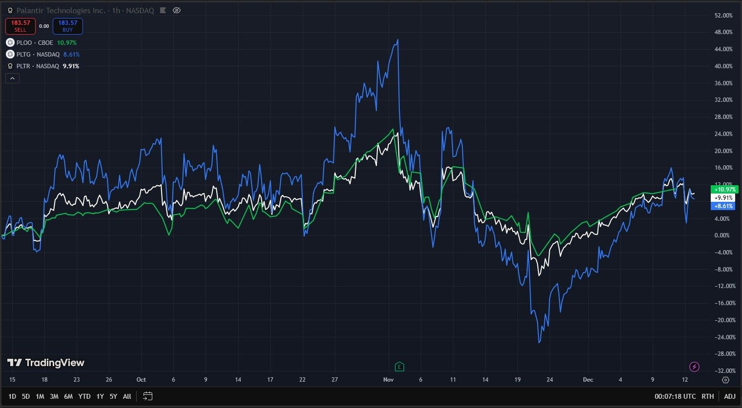 PLTR(White) vs PLOO(Green) vs PLTG(blue)
