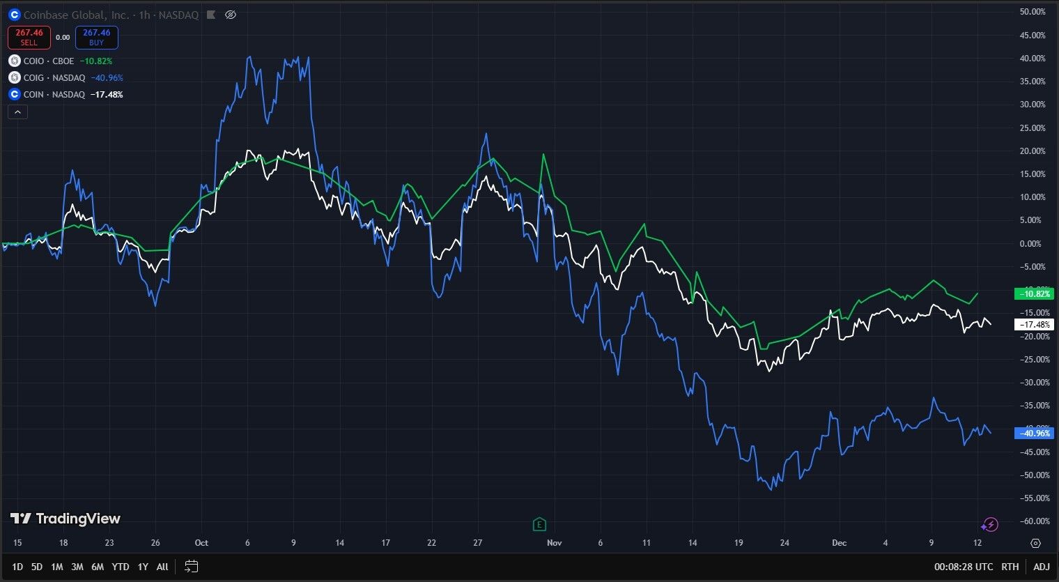 COIN(White) vs COIO(Green) vs CONL(blue)